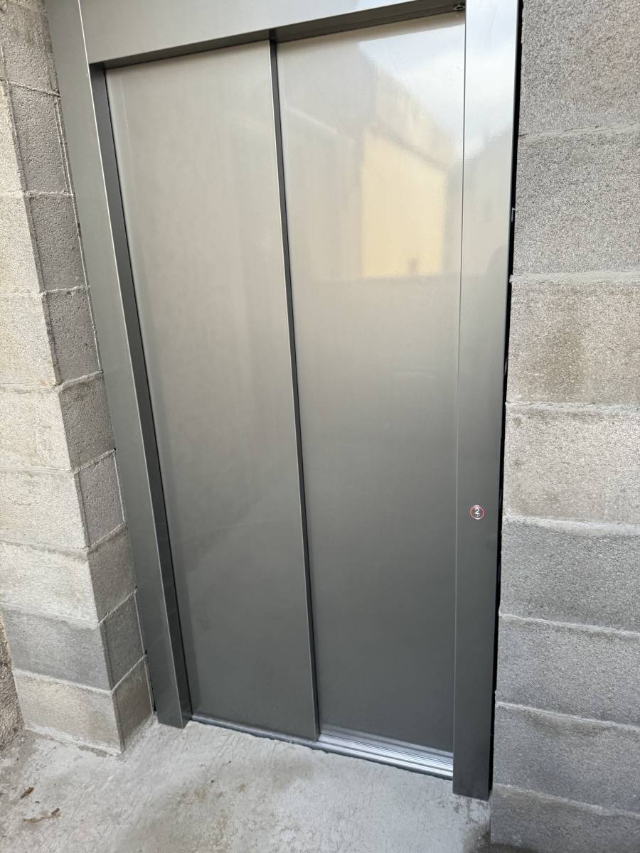Solution : Pour cette configuration, un élévateur conforme aux normes en vigueur a été installé. Pour des raisons de budget et de facilité de mise en œuvre, nous avons opté pour la construction d’une gaine maçonnée.
