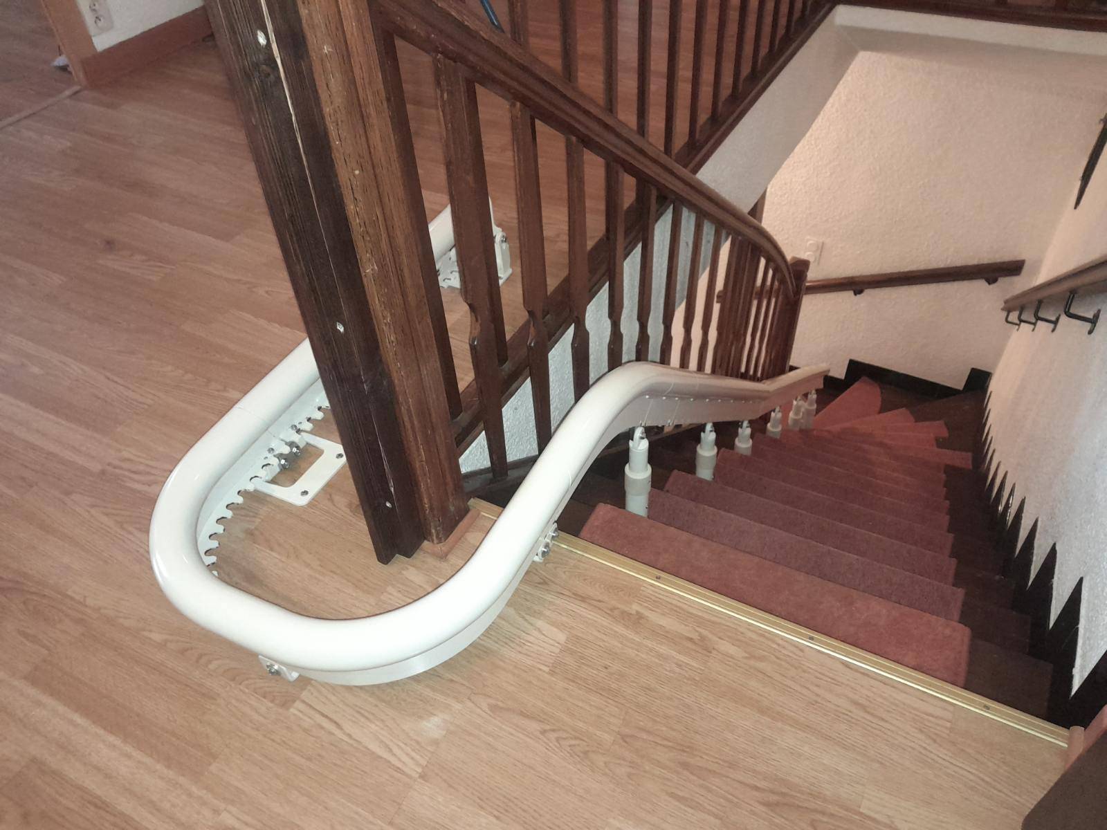 Une fois le devis validé, nous avons lancé la fabrication sur mesure du rail et des composants, livrés en moins de trois semaines. Le jour de l'installation, notre équipe de techniciens spécialisés est intervenue à Romans sur Isère. En seulement quelques heures, le monte-escalier tournant était en place, testé et prêt à l'emploi. Notre cliente a immédiatement pu l'utiliser, ravie de la fluidité et du confort de l'appareil.